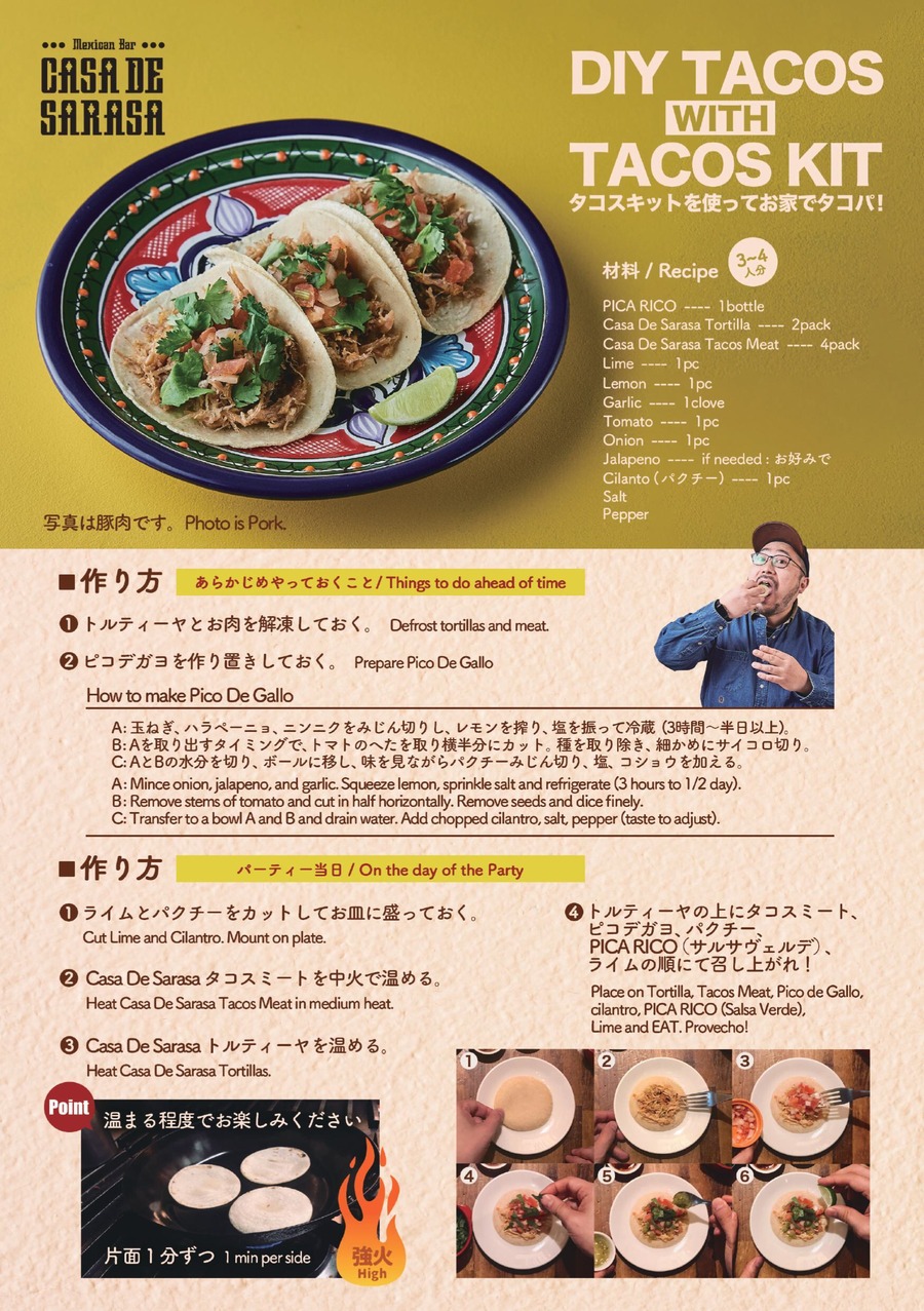 - Casa De Sarasa タコスセット (オリジナルサルサあり)「冷蔵」商品 オリジナルタコスミート3点 + トルティーヤ2袋 + オリジナルサルサ Pica Rico (瓶)